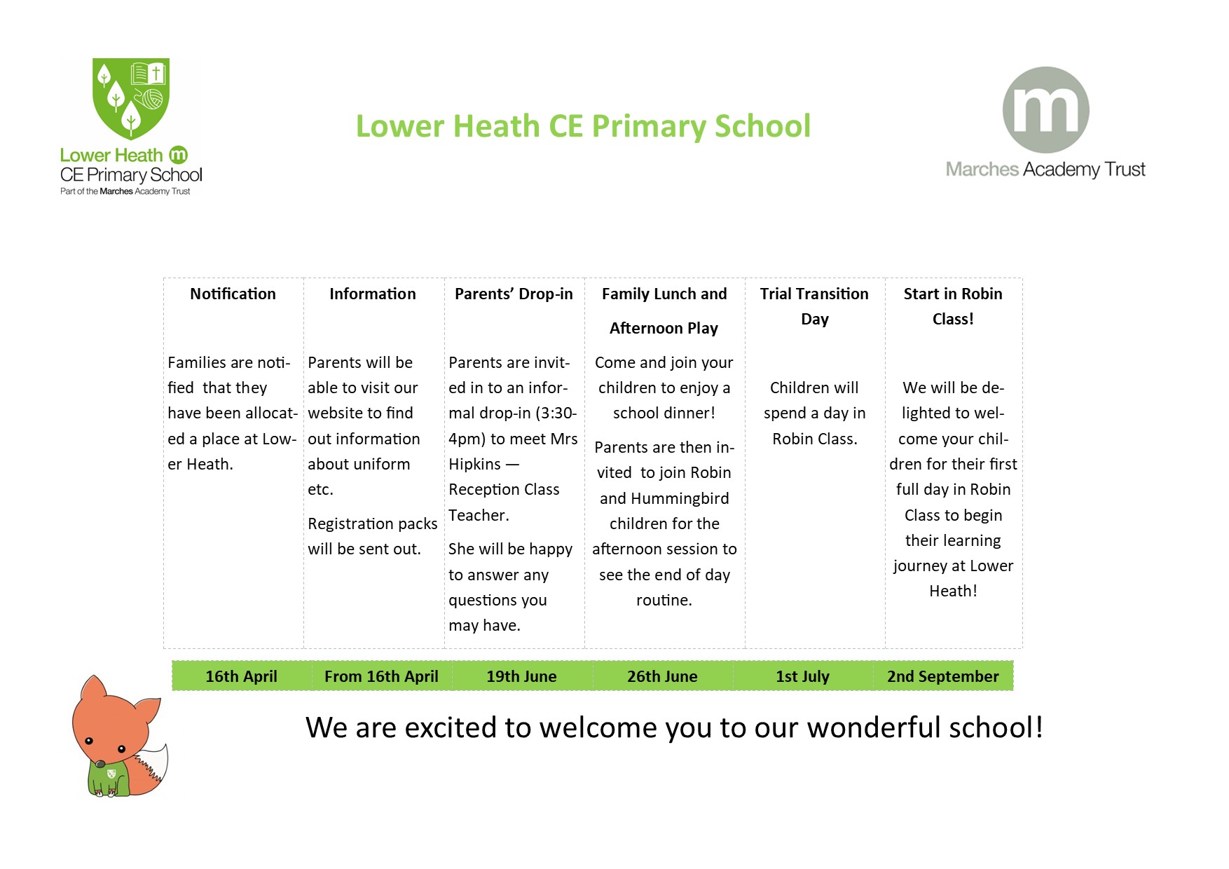 We are excited to warmly welcome you to our wonderful school! This section of our website will provide you with lots of helpful information to ensure you and your family are well prepared for your child’s first day at school (please click on the images to enlarge).